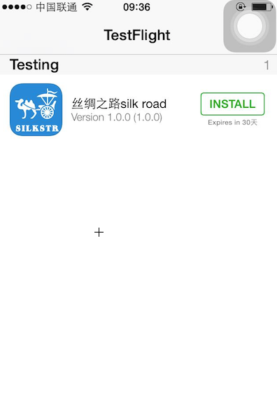 5、手機啟動TestFlight后,可以看到安裝“絲綢之路”App的界面,如下圖: